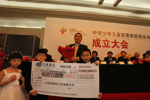 中華少年兒童慈善救助基金會(huì)(以下簡稱“兒慈會(huì)”)2010年1月12日在北京人民大會(huì)堂正式成立。中共中央政治局常委、國務(wù)院副總理李克強(qiáng)在為基金會(huì)成立發(fā)來的賀信中說:“慈善救助是一項(xiàng)崇高的事業(yè),是對社會(huì)保障的重要補(bǔ)充。謹(jǐn)對基金會(huì)的成立表示祝賀,對大家矢志從事少年兒童事業(yè)表示由衷的敬意。希望并相信你們會(huì)在各方支持下,發(fā)揮優(yōu)勢,搭建平臺,幫助更多有特殊困難的少年兒童和他們的同齡人,一起在同一片藍(lán)天下健康成長。”江西省建設(shè)工程有限公司董事長宗贛生到會(huì)并捐贈(zèng)人民幣500萬元設(shè)立"自立奮進(jìn)獎(jiǎng)",宗贛生表示,以后會(huì)根據(jù)企業(yè)發(fā)展?fàn)顩r捐款額逐年遞增,對貧困學(xué)生以及教師進(jìn)行資助和獎(jiǎng)勵(lì)。